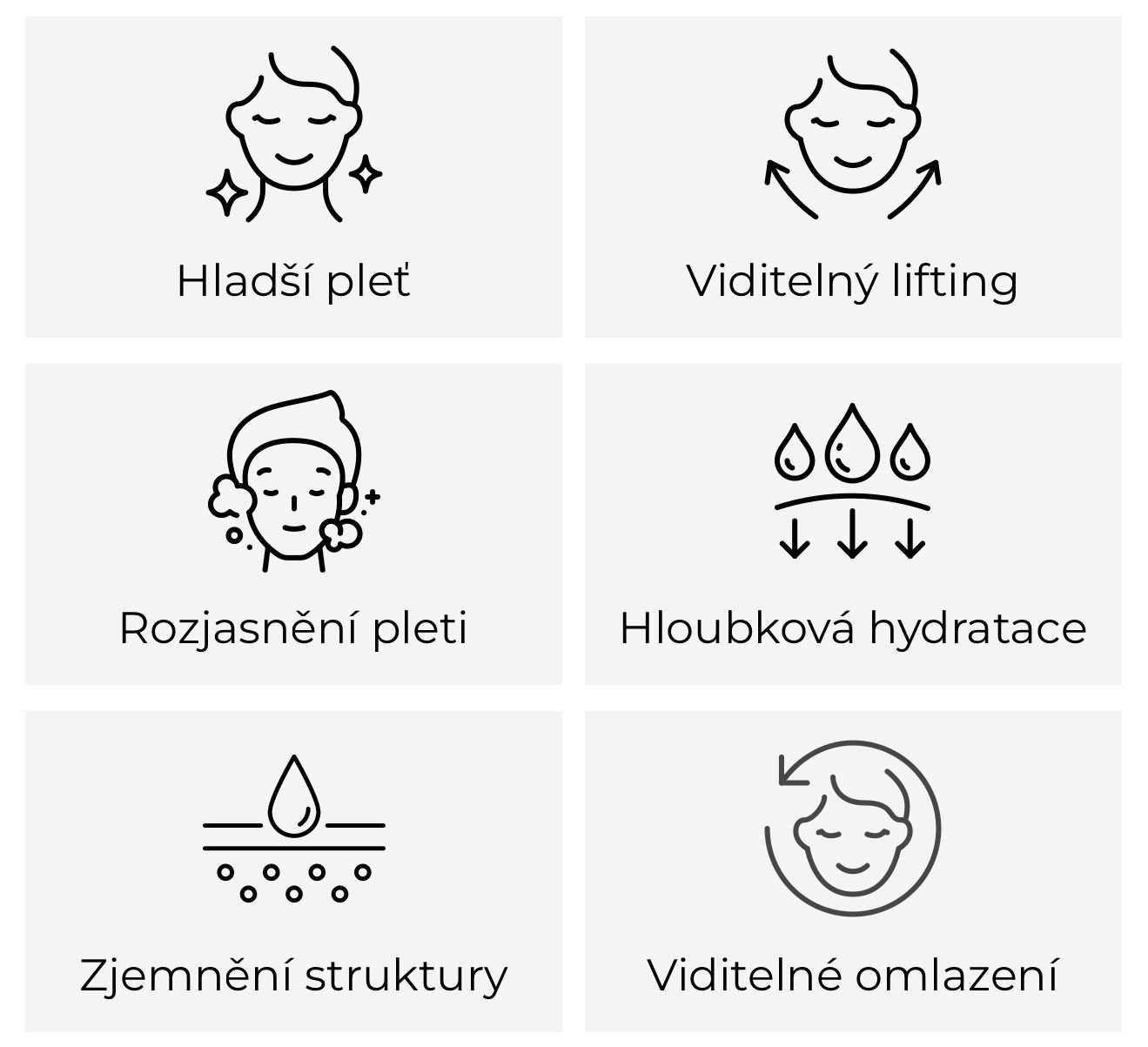 Pomáhá minimalizovat póry, redukovat vrásky a účinně a rychle ošetřovat jemné linky, vrásky kolem očí a vrásky kolem očí