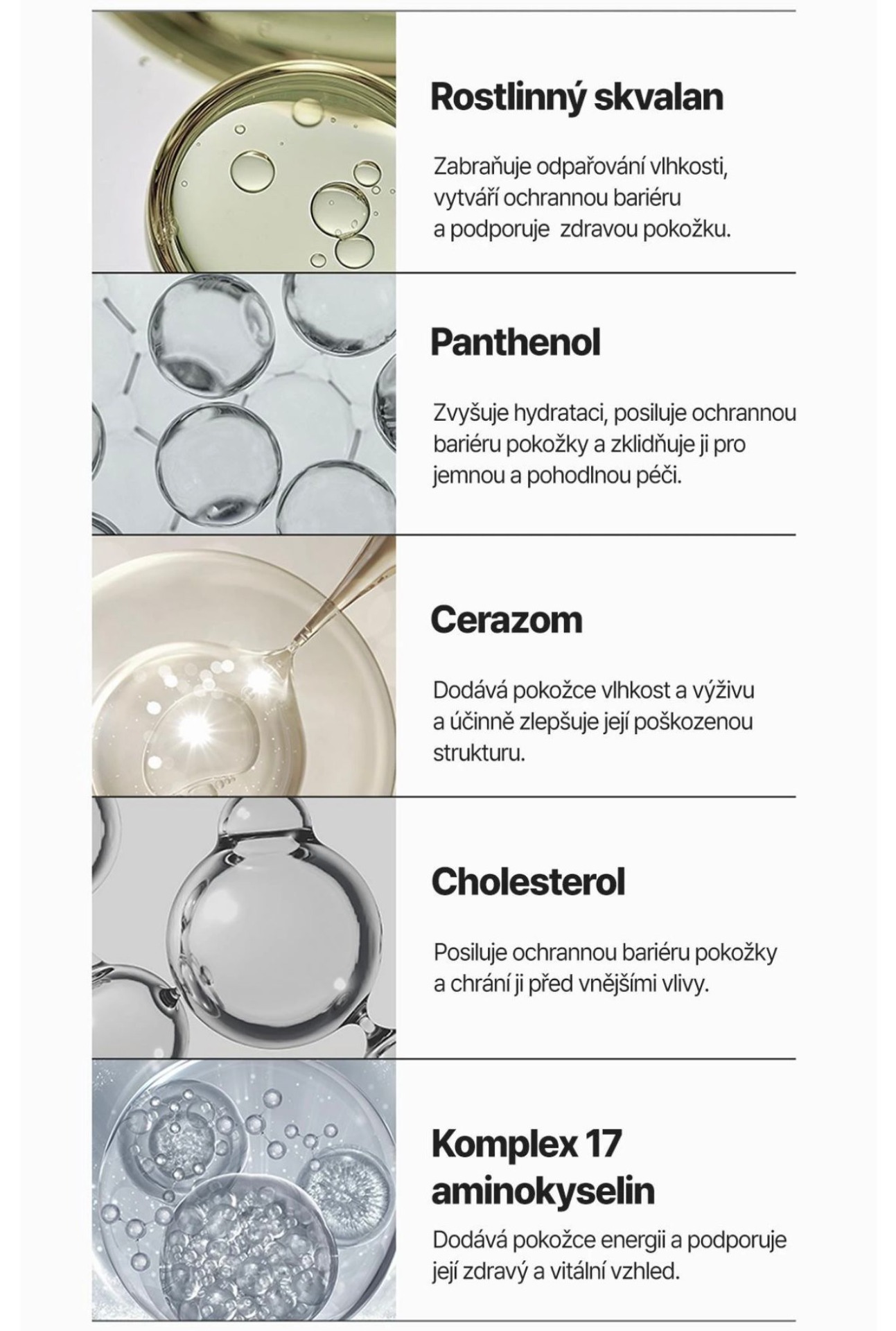 Ceramidový komplex: Obnovuje kožní bariéru, které tvoří na pleti ochrannou vrstvu. Rozjasňuje tón pleti.